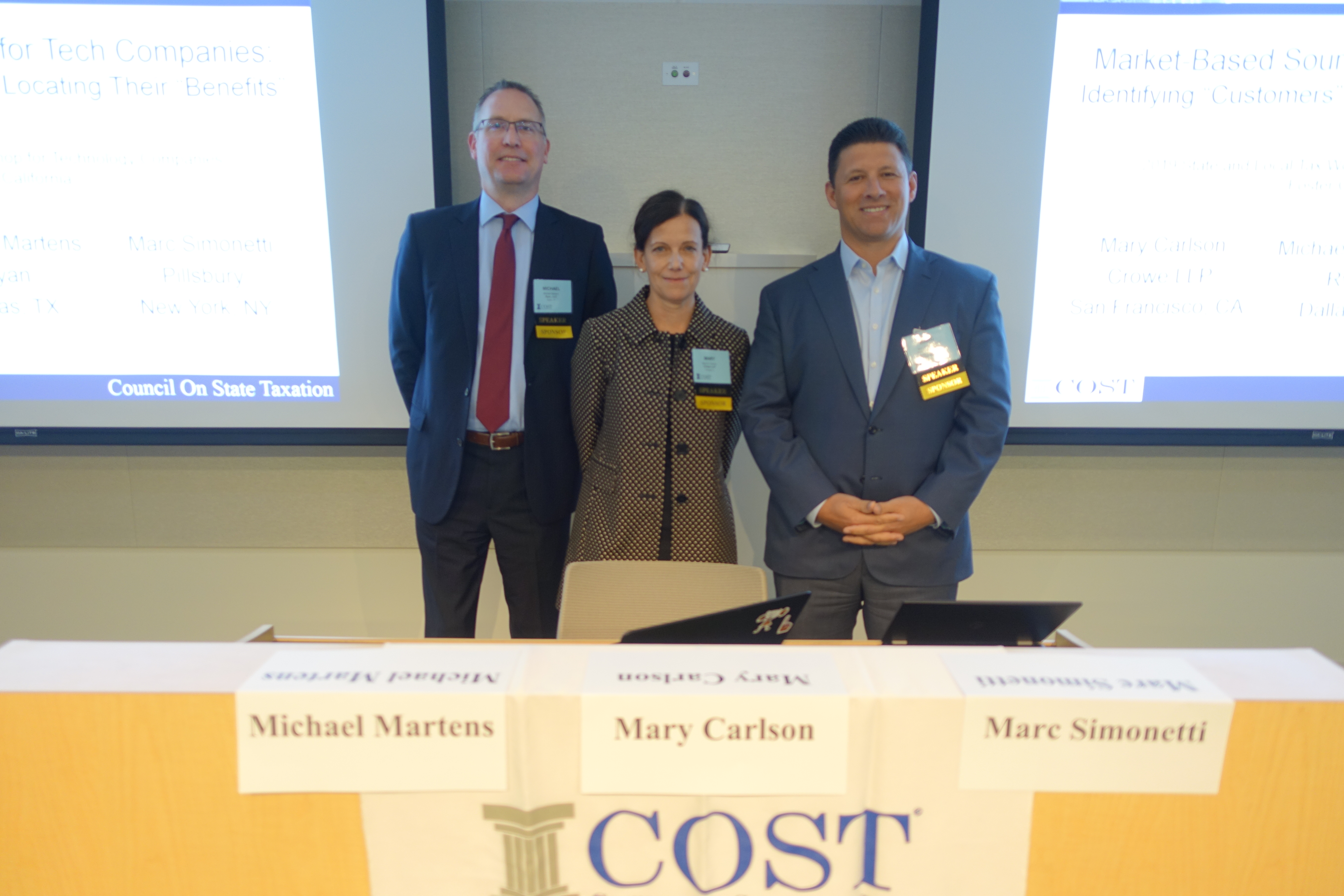 After a successful SALT Retreat in Napa, Calif., the team headed to Foster City to present on topics at the COST State and Local Tax Workshop for Technology Companies. Carley Roberts, Craig Becker and Jeffrey Vesely spoke on a variety of topics including an overview of new and established local taxes in cities that are aggressively targeting businesses, property tax issues that impact the tech industry, and a question and answer panel with the experts. The presentations were very informative and the Workshop was a success!
